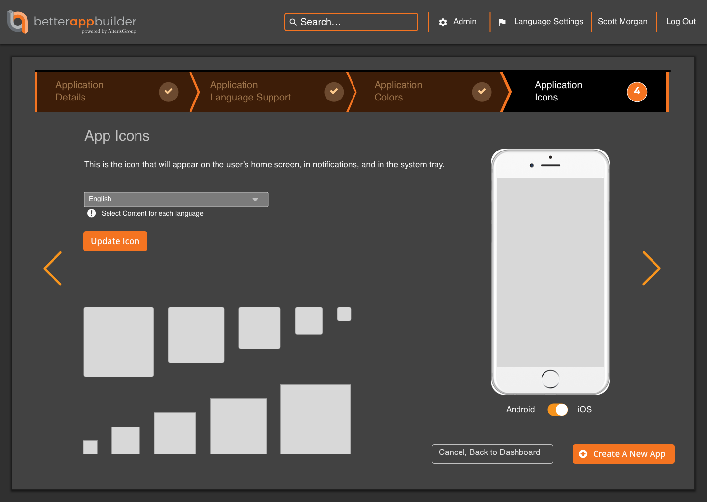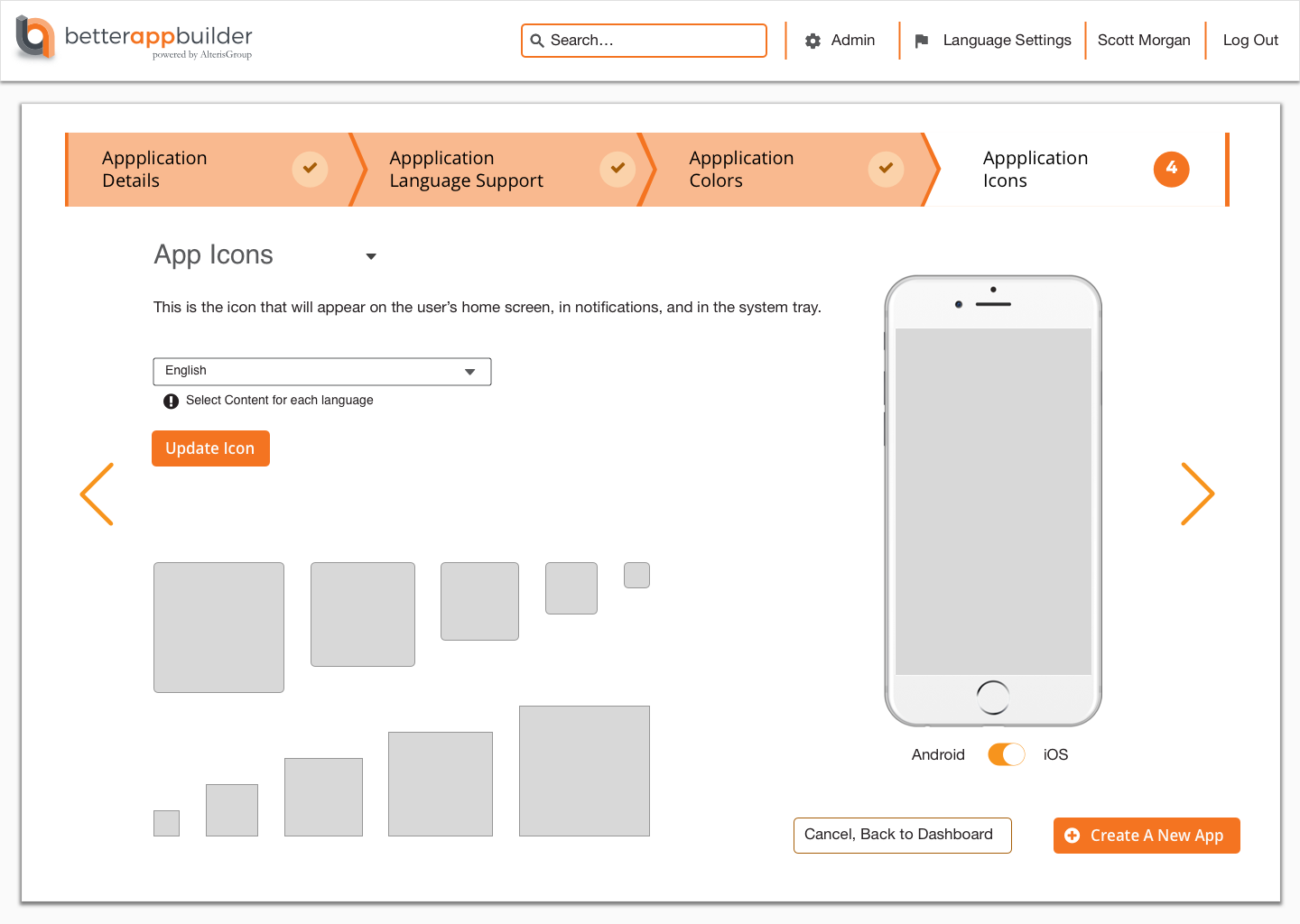 Alteris Group had a product idea of a CMS that would make it easier for small businesses to create and manage their own app. The project began with over 100 Balsamiq, low-fidelity wireframes created by the product owner with no defined branding or visual system and a strict 7-month deadline to deliver a live product to showcase at an expo.
