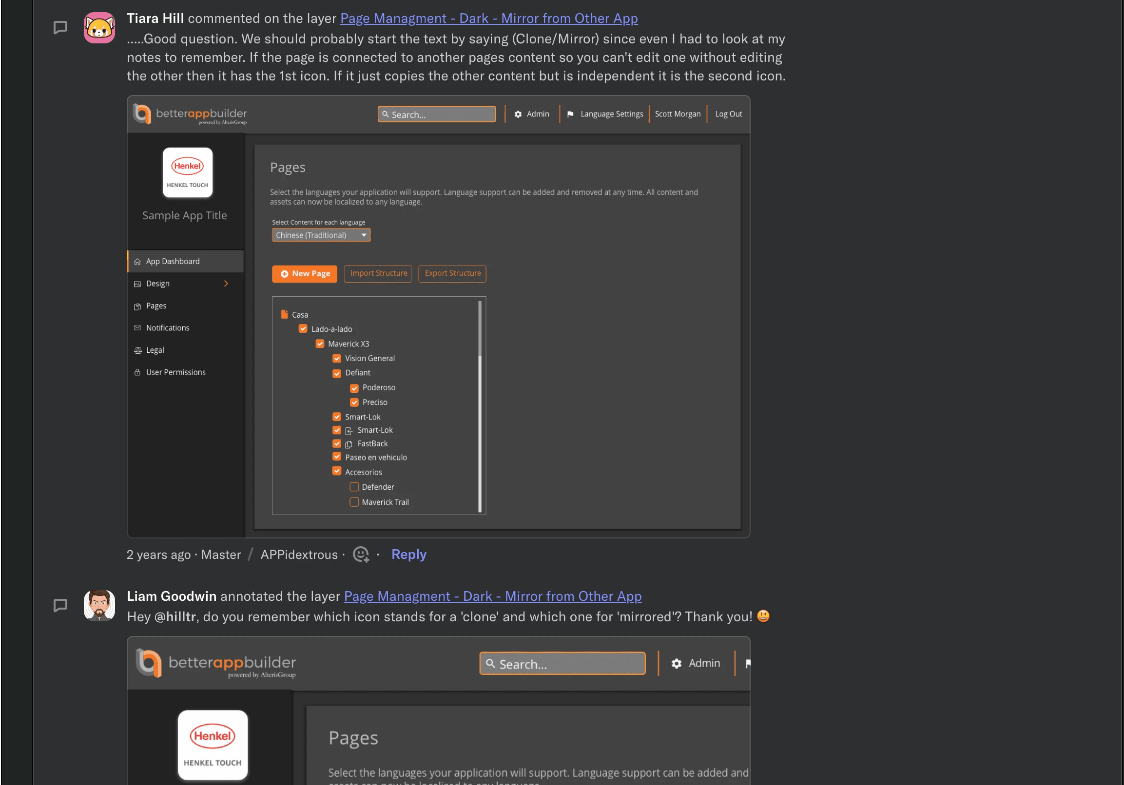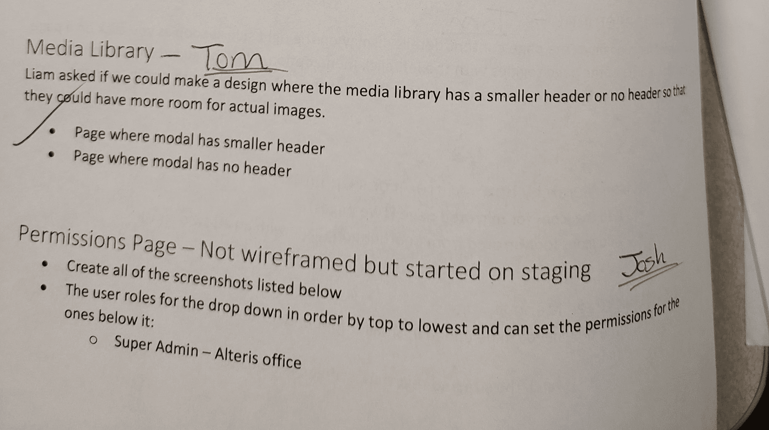 I would delegate a section to each designer and then organize adequate design and review time before I presented the designs to development with my own updates. I managed development and product owner feedback at our meetings. Initial design questions came in Abstract. Jira was utilized for component and page flow questions that required visual guides. Microsoft Teams was also always open for general questions between all teammates.